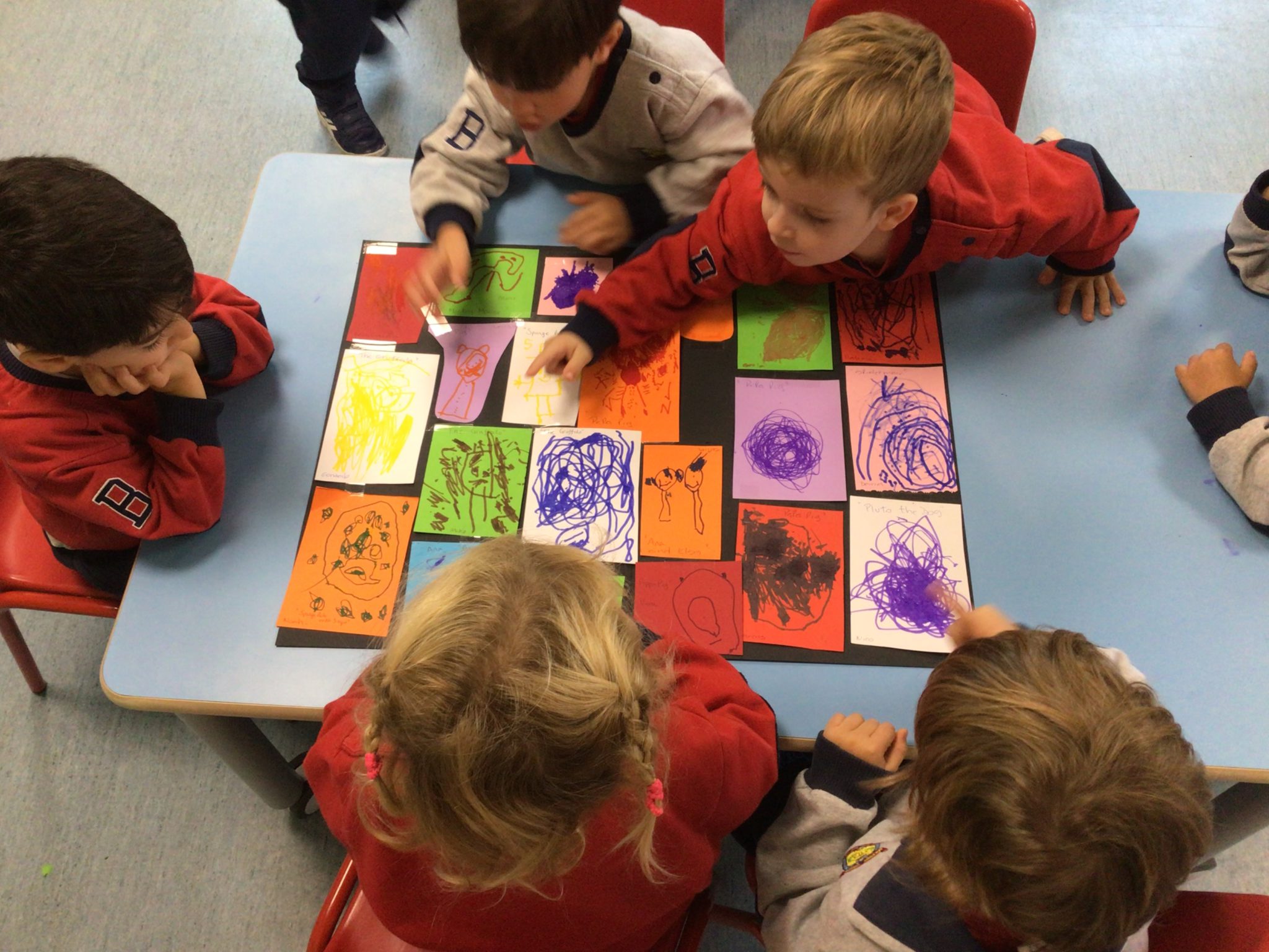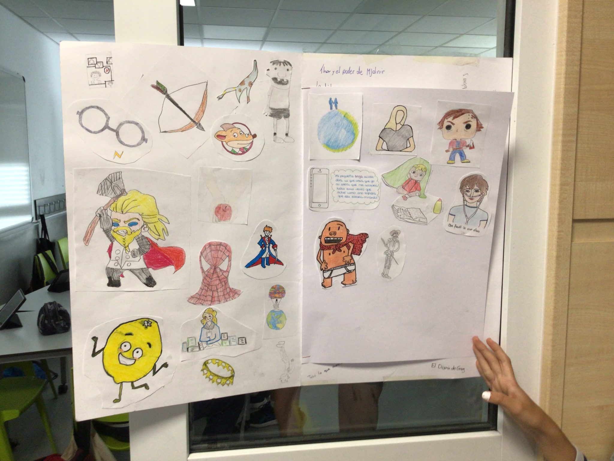La actividad que llevamos a cabo este año, fue convertir los pasillos de cada colegio en auténticas estanterías llenas de libros, como de si de una gran biblioteca se tratase: Cada puerta tenía un gran libro, cada gran libro contenía decenas de títulos.