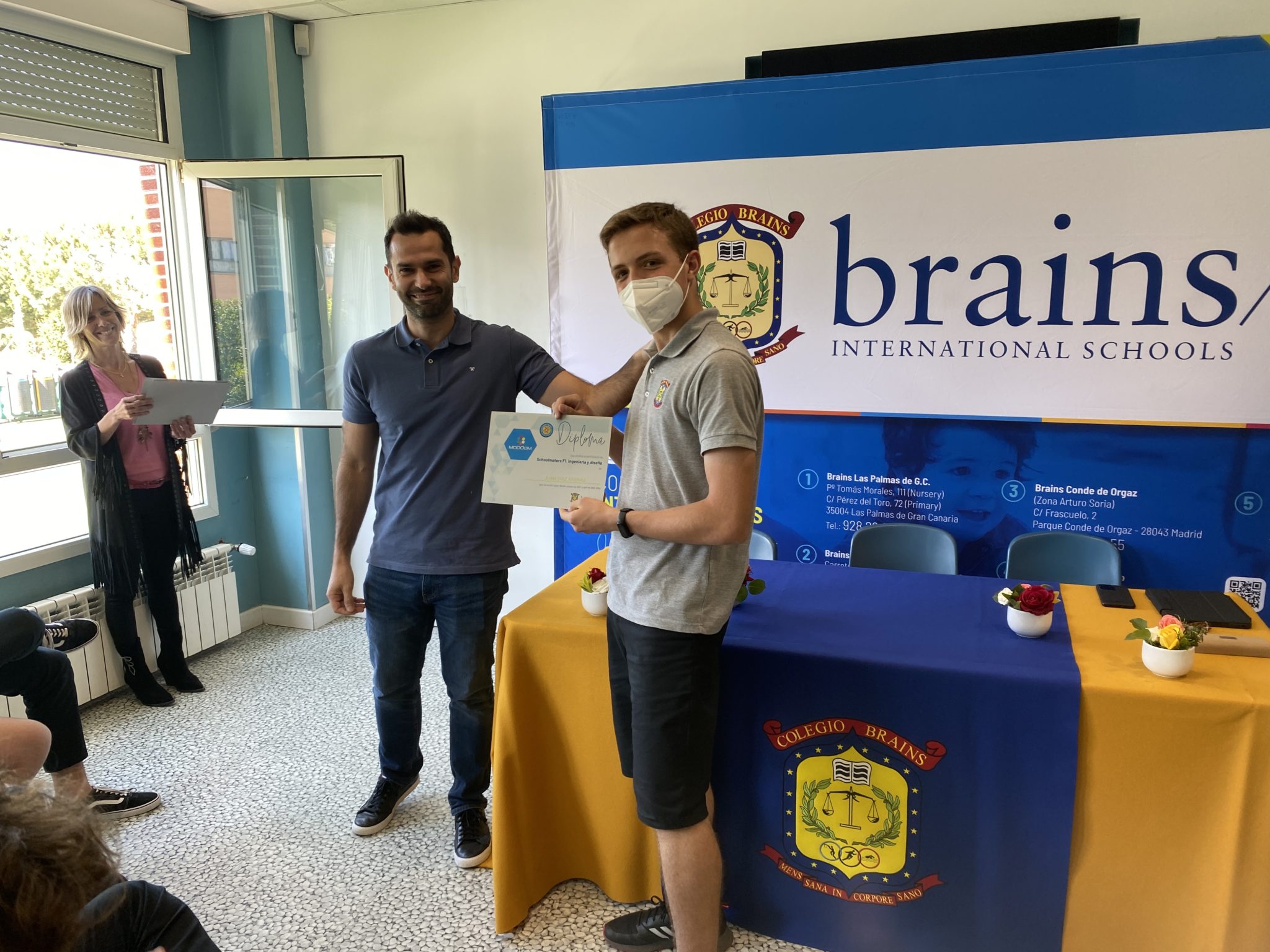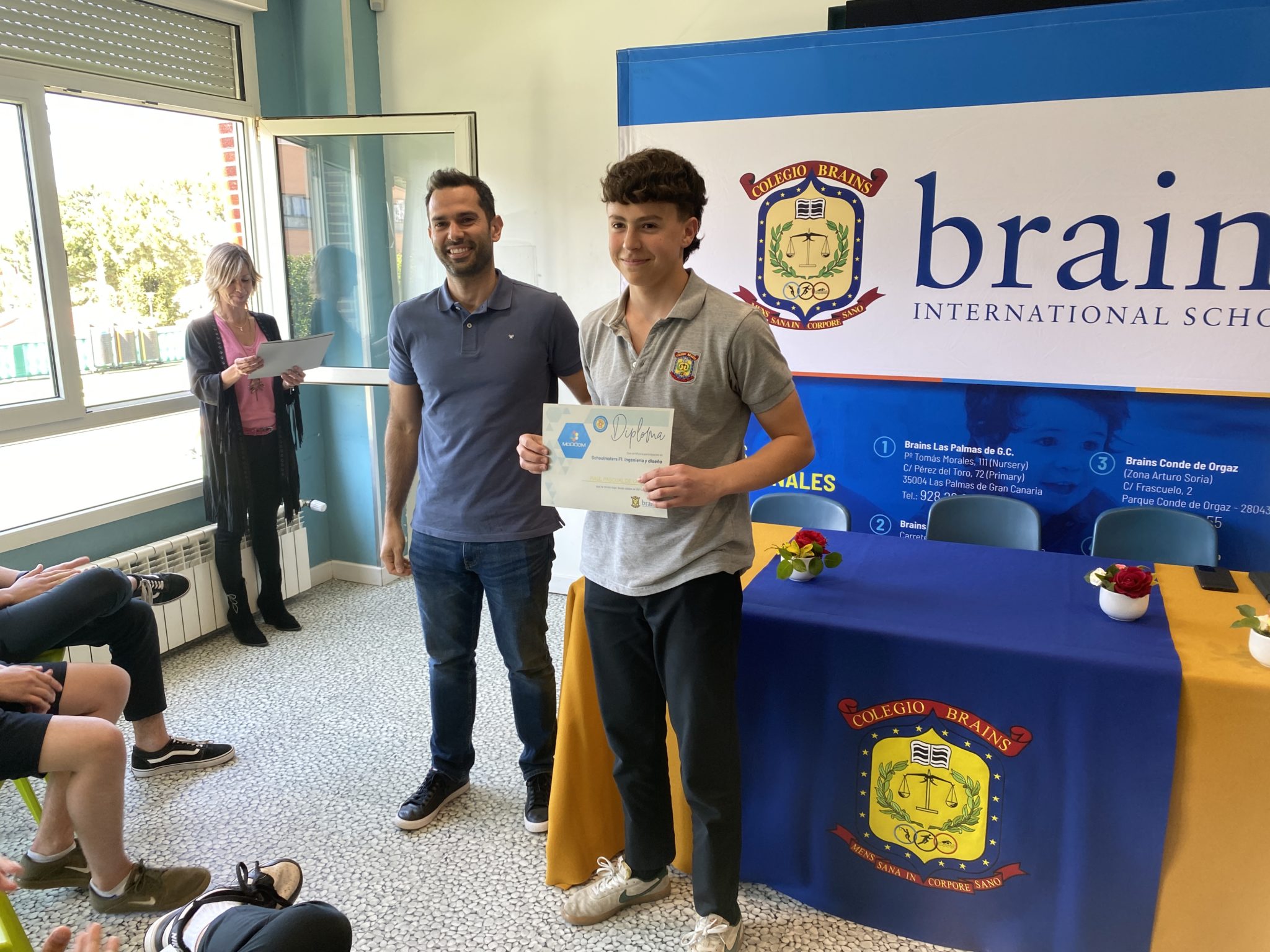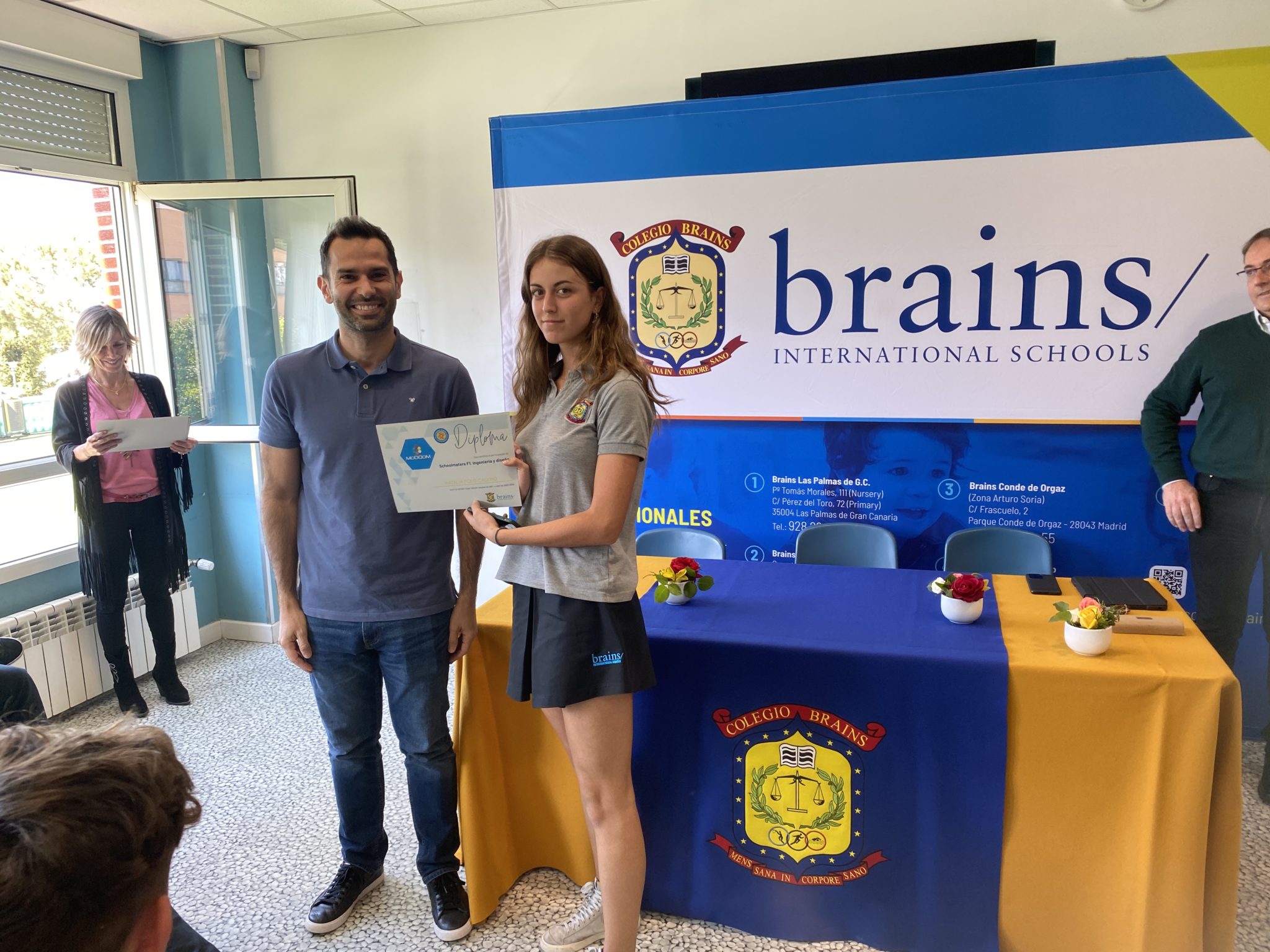 Los alumnos disfrutaron del acto de clausura del School Master junto a sus profesores Edurne Berdún y David de las Heras, sus familias y el piloto Juan Cáceres, con el que tuvieron la posibilidad de probar su destreza a los mandos de los simuladores y hacer cambios en el reglaje de los coches.