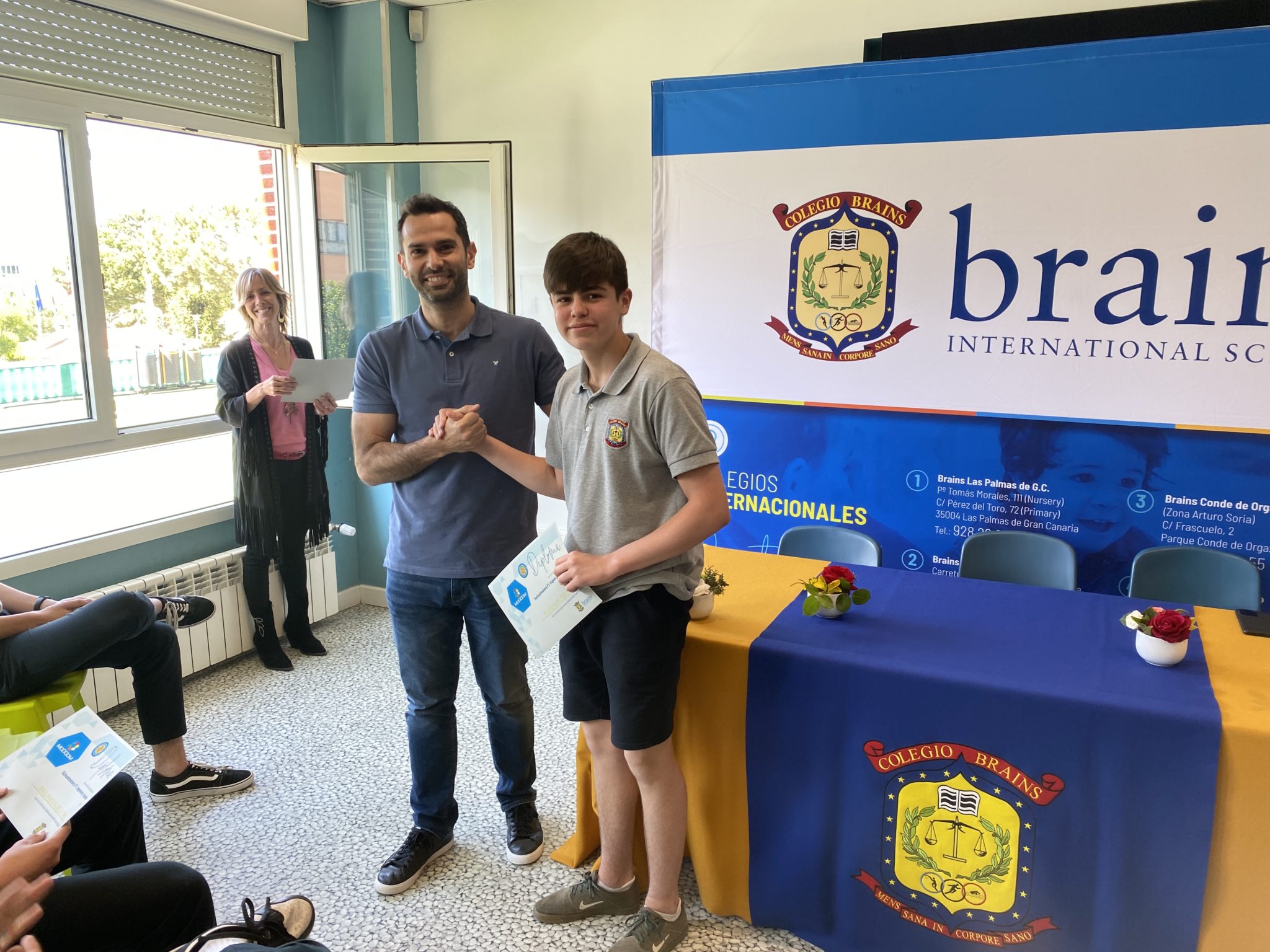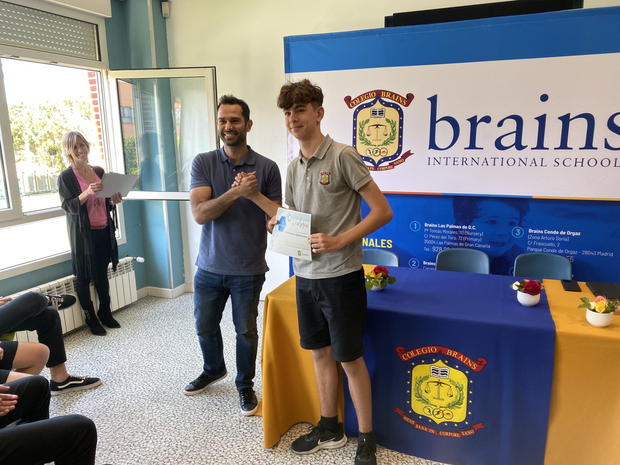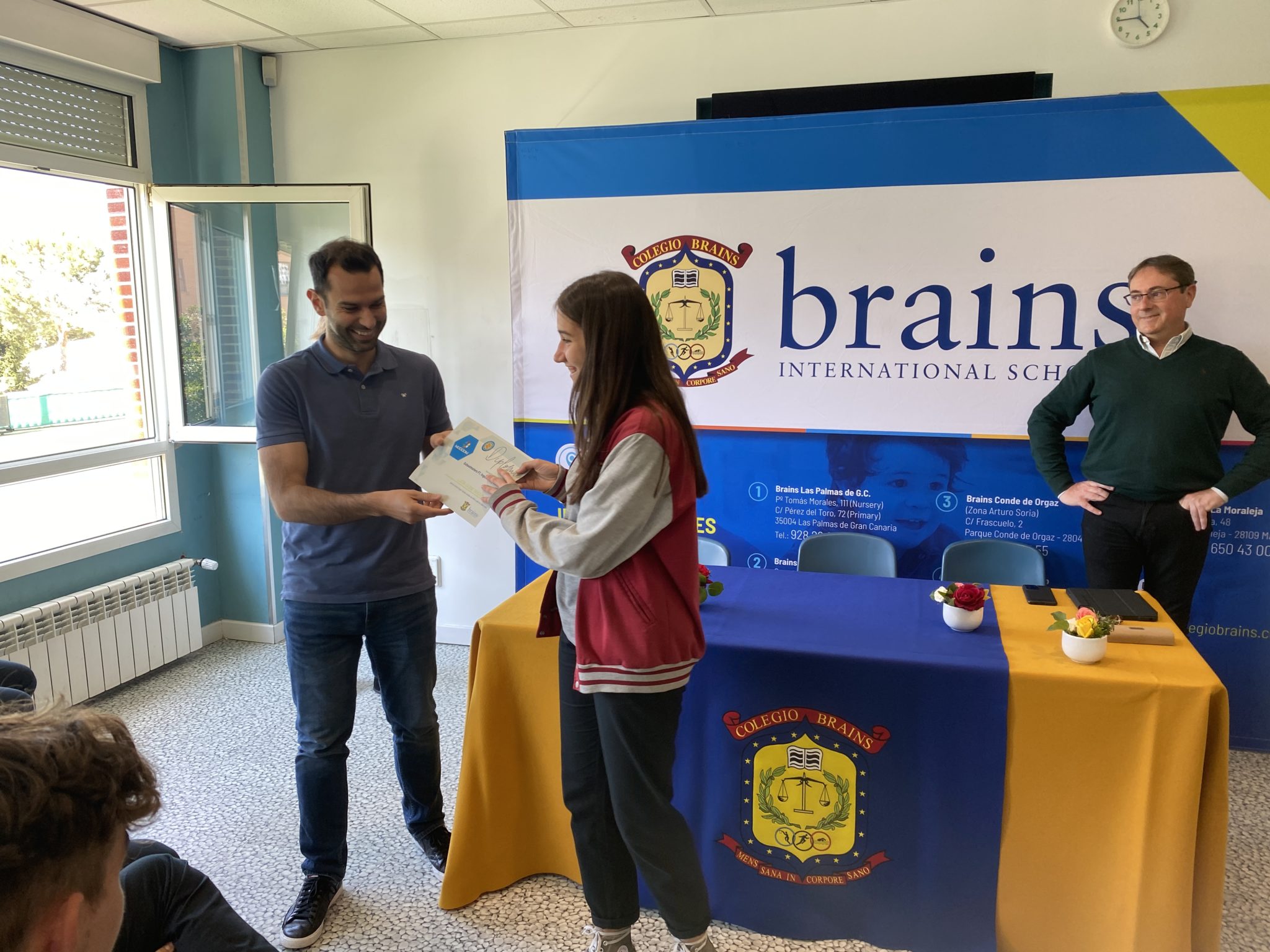 Los alumnos disfrutaron del acto de clausura del School Master junto a sus profesores Edurne Berdún y David de las Heras, sus familias y el piloto Juan Cáceres, con el que tuvieron la posibilidad de probar su destreza a los mandos de los simuladores y hacer cambios en el reglaje de los coches.